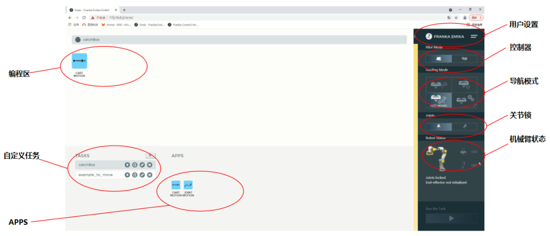 注意:使用Franka的时候,要先解锁关节,即点击“关节锁”处的解锁按钮。